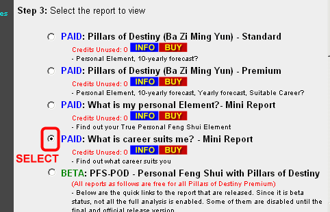 - Select the PAID: Pillars of Destiny (Ba Zi Ming Yun) - Standard